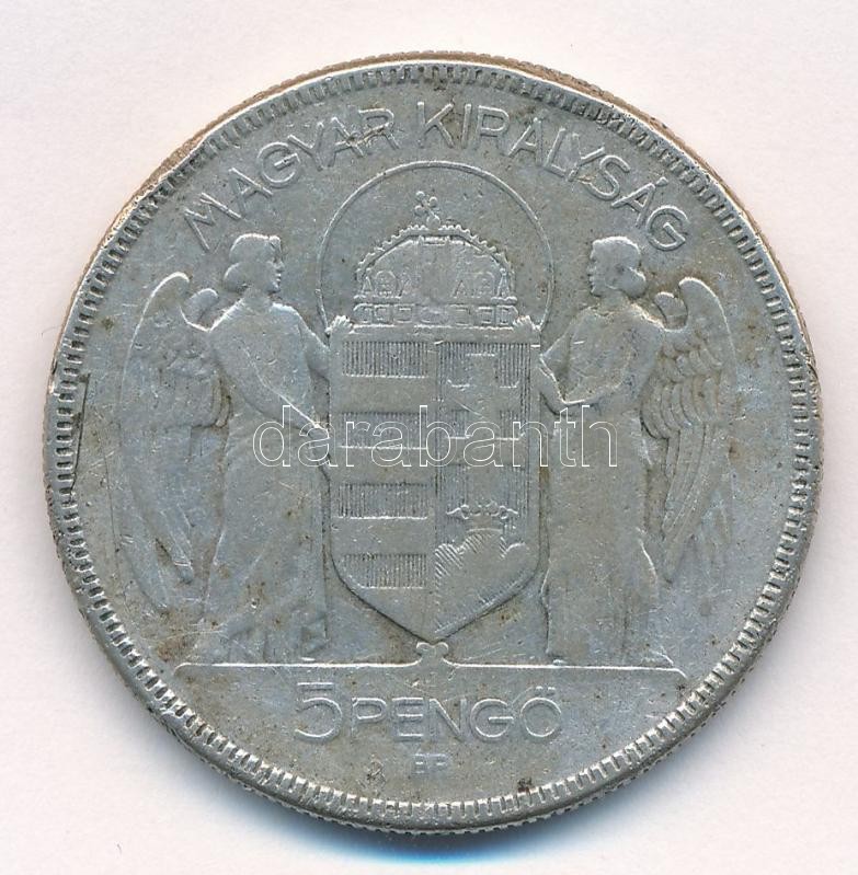https://www.darabanth.com/en/413-Online-auction/413.0/Numismatics/Hungarian-coins-and-coins-with-Hungarian-mint-marks~1500008/1930-5P-Ag-Horthy-jobbra-T3-patina-ph-Adamo-P8~II2574986