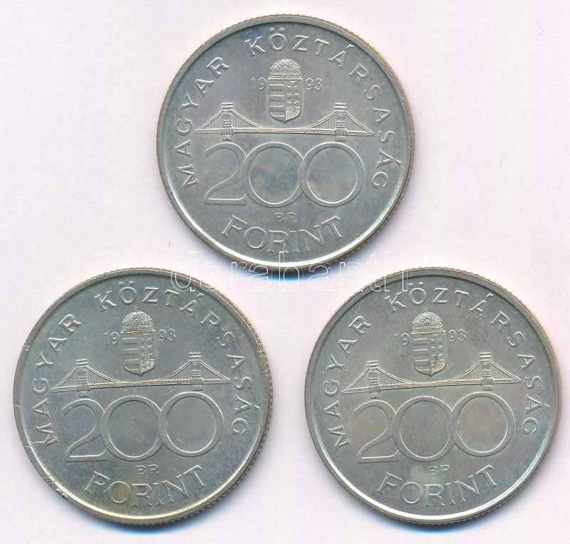 1993. 200Ft Ag "MNB" (3x) T:1-,2