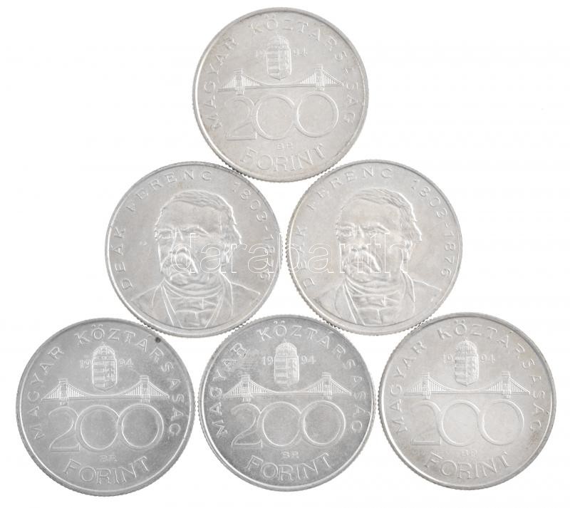 1994. 200Ft Ag "Deák" (6x) T:1-,2