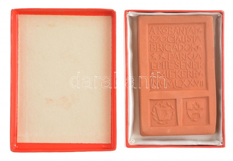 1977. "A kőbányai Szocialista Brigádok Parkja építésének emlékére MCMLXXVII" egyoldalas kerámia plakett tokban (69x110mm) T:1-
