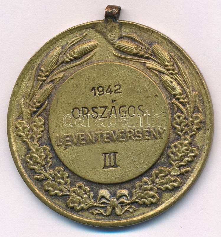 Berán Lajos (1882-1943) 1942. "Országos Leventeverseny III." Br díjérem füllel, hátoldalán gravírozva (41mm) T:1-,2 patina, kis ph