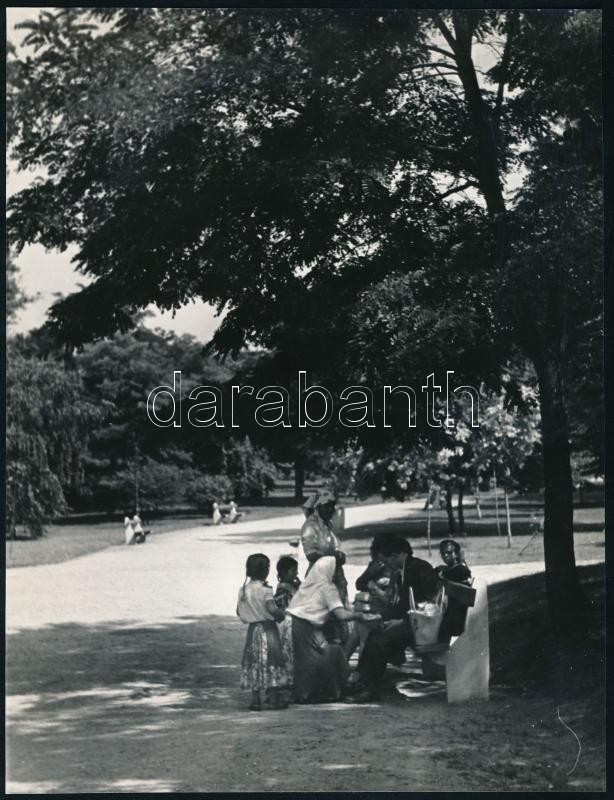 1957 Jövendőmondó cigányok a Margit-szigeten, fotó hátoldalon feliratozva, szép állapotban, 23×17,5 cm