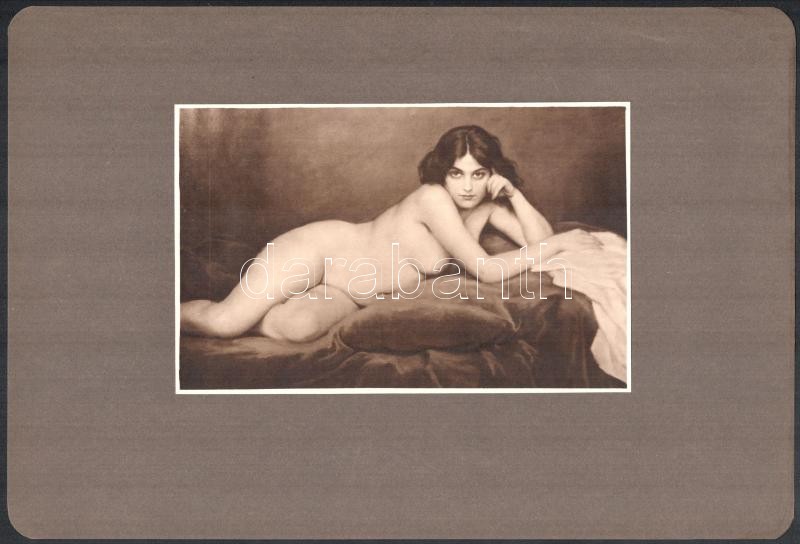 Description: cca 1938 Dr. Csörgeő Tibor (1896-1968) budapesti fotóművész hagyatékából vintage fotó, egy szolidan erotikus hölgy festményéről, jelzés nélkül, 11x17,5 cm, albumlap 20,5x30,4 cm
