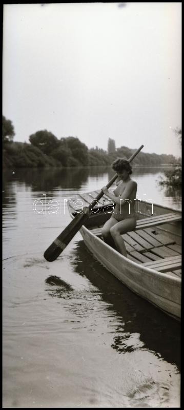 cca 1988 előtti aktok, ,,még éppen rajta volt a film végén" felvételek, ebből ered a negatívok nem szokványos mérete, de a lényeg mindenhol látszik, Menesdorfer Lajos (1941-2005) budapesti fotóművész hagyatékából, 11 db vintage NEGATÍV, 6x2 cm és 6x3,8 cm között