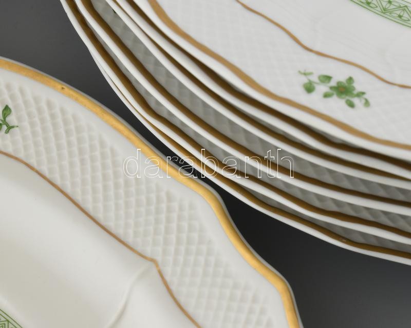 Hollóházi Erika porcelán étkészlet. 6 személyes, kézzel festett, jelze...