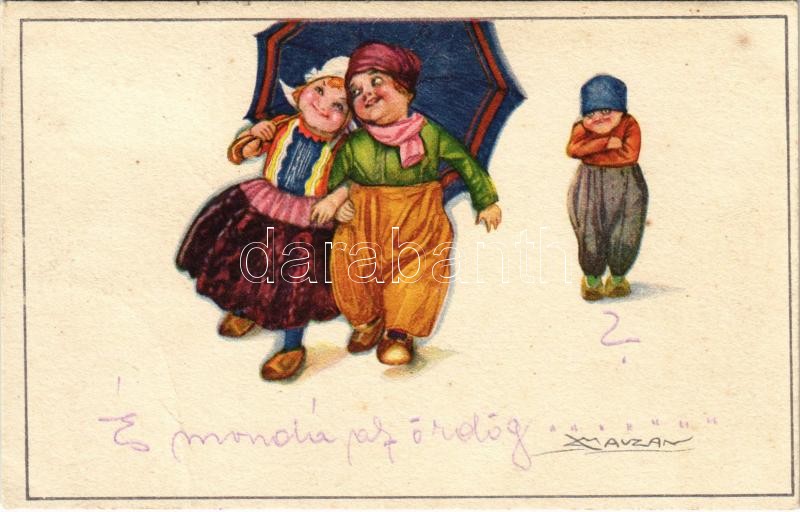 1928 Italian children art postcard, couple. Anna & Gasparini 511-4. s: Mauzan (fa)