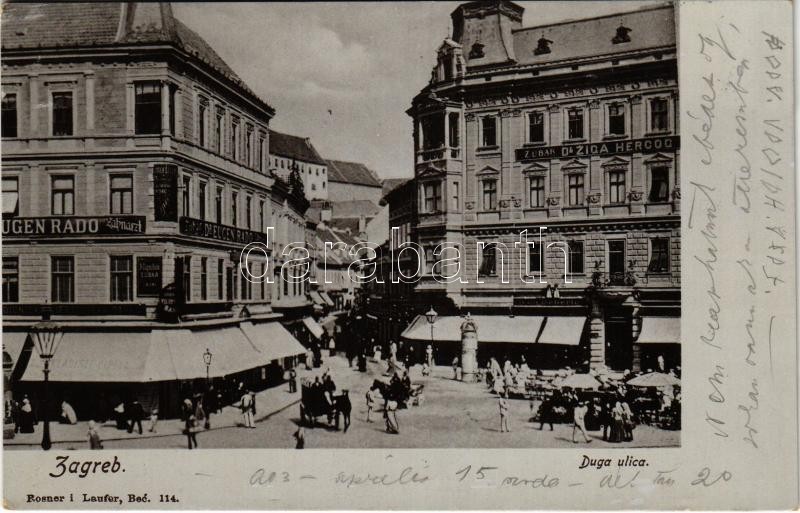 1903 Zagreb, Zágráb; Duga ulica / street, market, dentists / utca, piac, Dr. Eugen Rado és Dr. Ziga Hercog fogorvos