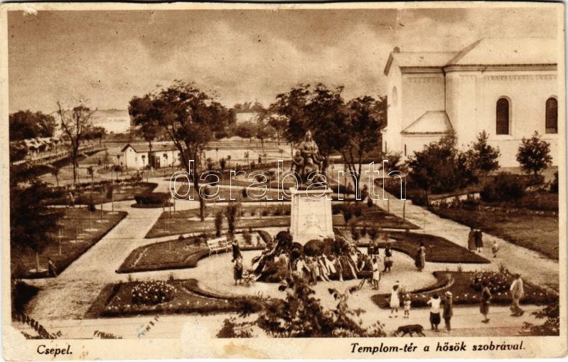 https://www.darabanth.com/en/413-Online-auction/413.0/Postcards/Hungary~2000006/1930-Budapest-XXI-Csepel-Templom-ter-a-Hosok-szobraval-vagott-cut~II2580674