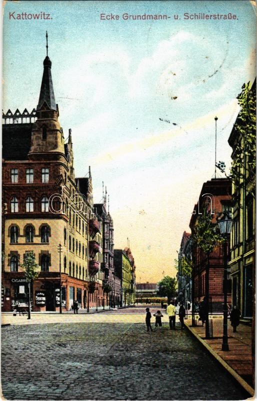 1915 Katowice, Kattowitz; Ecke Grundmann- u. Schillerstrasse, Cigarren...