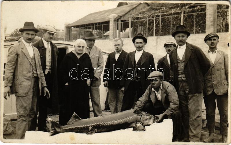 Apatin, Horgászok Dunából kifogott viza hallal / fishermen with sturge...