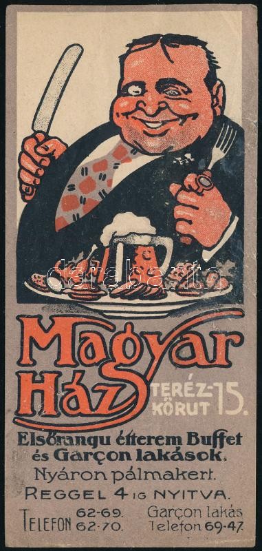 cca 1910 "Magyar Ház. Elsőrangu étterem és Buffet és Garcon lakás... https://www.darabanth.com/en/414-Online-auction/414.0/Art-and-other-collectibles/Advertisement~500022/cca-1910-Magyar-Haz-Elsorangu-etterem-es-Buffet-es-Garcon-lakasok-Nyaron-palmakert-Regge~II2586392