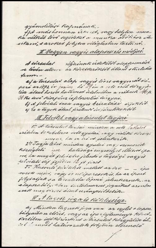cca 1880 A Gyulai Lakatos Iparosok társulatának alapszabályai 8p. illetékbélyeggel