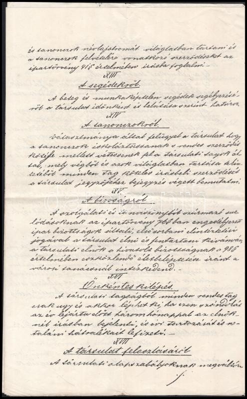 cca 1880 A Gyulai Lakatos Iparosok társulatának alapszabályai 8p. ille...