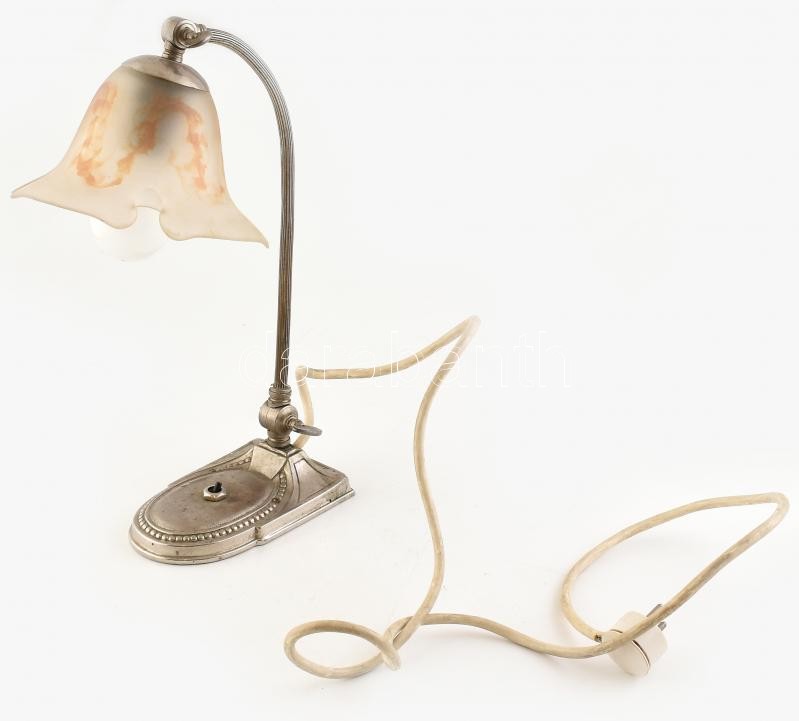 Asztali lámpa, üveg búrával, műkodik, m:38cm