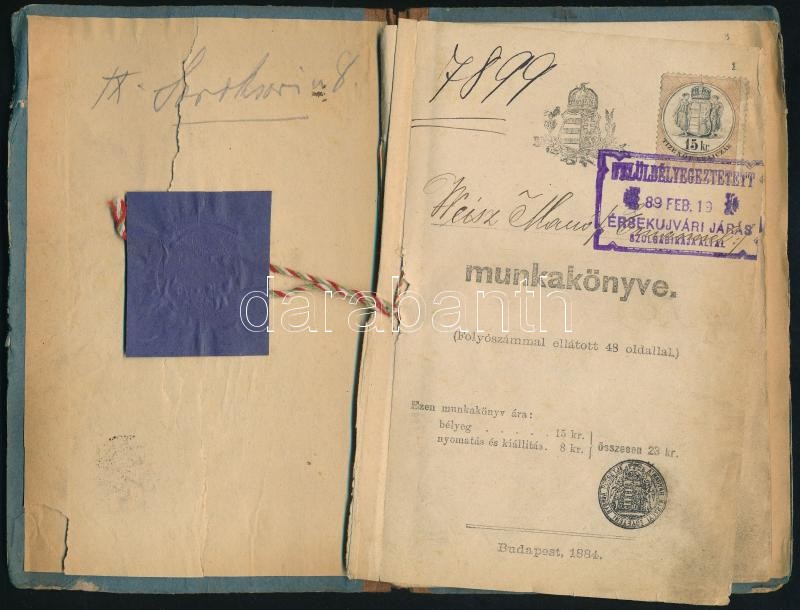 https://www.darabanth.com/en/414-Online-auction/414.0/Art-and-other-collectibles/Judaica~500025/1889-Munkakonyv-Weisz-Mano-mozes-vallasu-cipeszseged-reszere~II2594877
