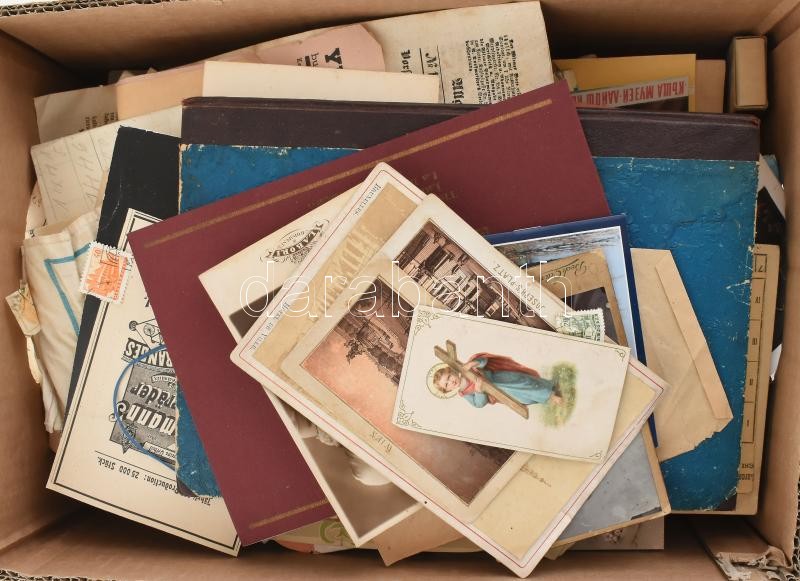 Nagy doboznyi vegyes papírrégiség átnézendő anyag