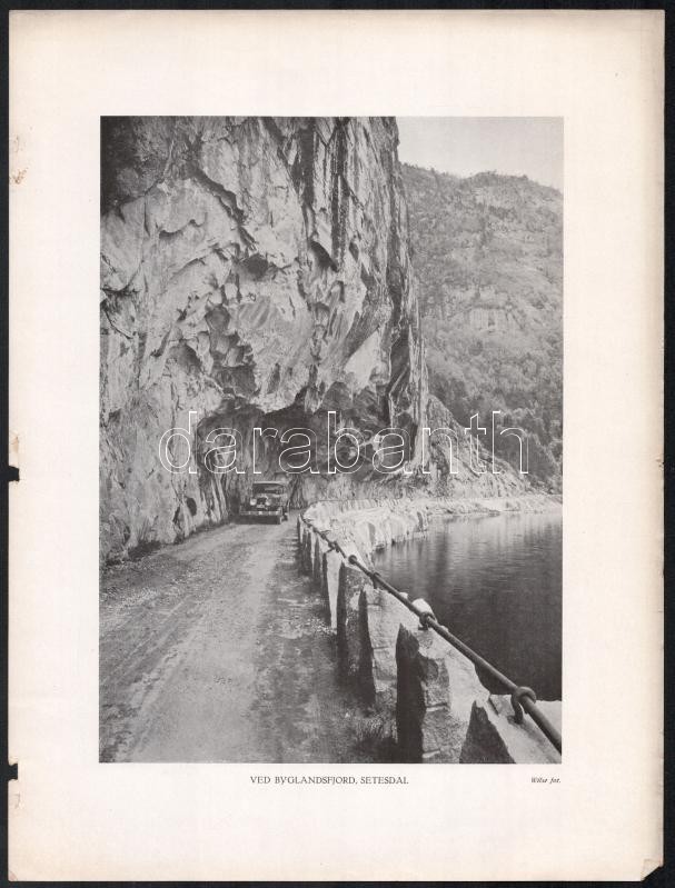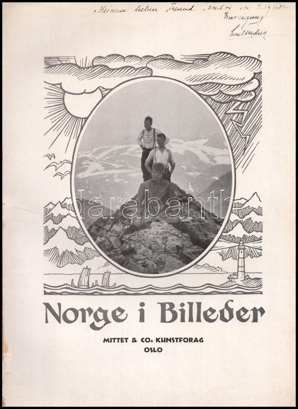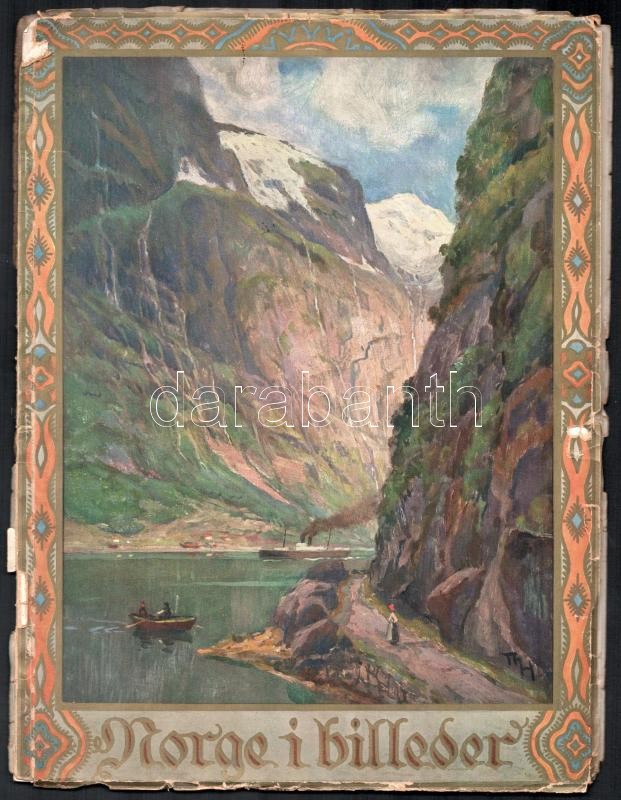 cca 1910 Norge i Billeder, képes album fekete-fehér fotókkal, négynyelvű (dán, német, angol, francia) bevezetÅ‘vel. Oslo, Mittet & Co. Kunstforag. Tűzött papÃrkötés, sérült, a hátsó borÃtó és az utolsó két lap elvált a kötéstÅ‘l.