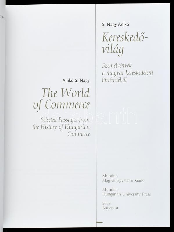 S. Nagy Anikó: Kereskedővilág. Szemelvények a magyar kereskedelem tört... https://www.darabanth.com/en/414-Online-auction/414.0/Books/Books-Other-rarities~1000024/S-Nagy-Aniko-Kereskedovilag-Szemelvenyek-a-magyar-kereskedelem-tortenetebol-The-World-~II2594061