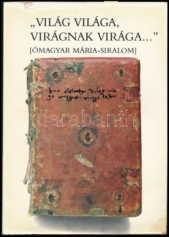 "Világ világa, virágnak virága..." [Ómagyar Mária-siralom.] Bemutatja Vizkelety András. Bp., 1986, Európa. Kiadói papírkötés, kiadói papír védőborítóban, a papír védőborítón kis szakadással, a papír védőborítón belsején gyűrődéssel, csak egy melléklettel, a mellékletek nagyrészt hiányoznak. A szerző, Vizkelety András (1931-) Széchenyi-díjas irodalomtörténész, filológus, középkorkutató, egyetemi tanár, MTA tagja.