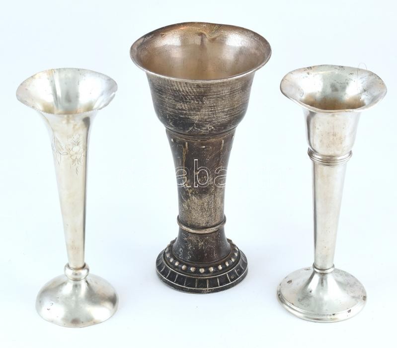 Ezüst (Ag) 3db váza, jelzett, kopott, bruttó: 365g, m:cca. 19cm