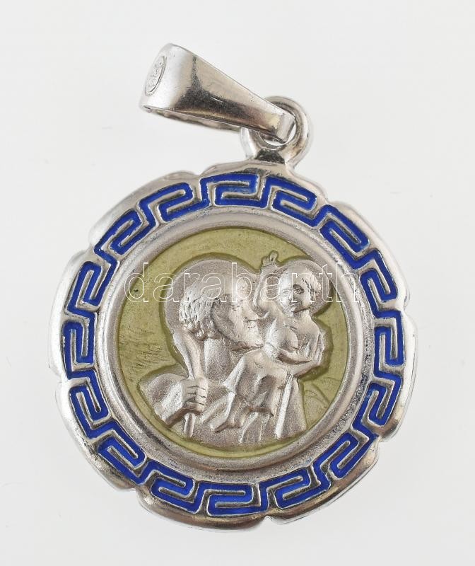 Ezüst (Ag) Szent Antal medál, zománcozott, jelzett, h:2,5cm, bruttó:4g
