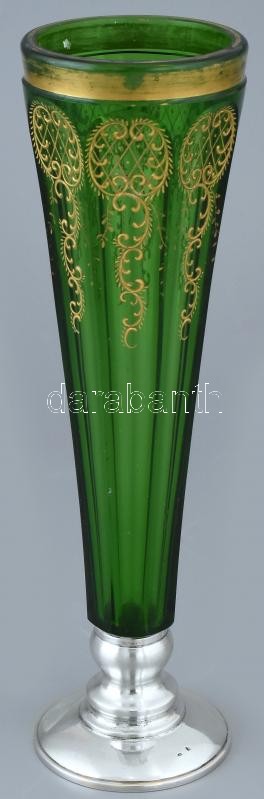 Ezüst (Ag) talpú biedermeier üveg váza, kopott, m:24cm, jelzett