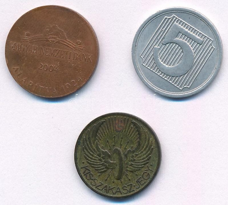 1933. "BSZKRT / Kisszakaszjegy" Cu + ~1980. "Csak takarékosan / 5" Al zseton + 2004. "MNB látogatóközpont" kétoldalas emlékzseton T:2,2-