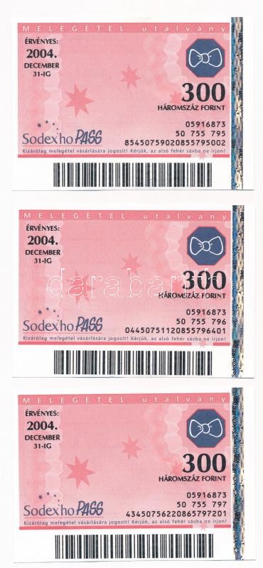 2004. "Sodexho melegétel utalvány" (3x) sorszámkövetők "50 755 795-797" T:II