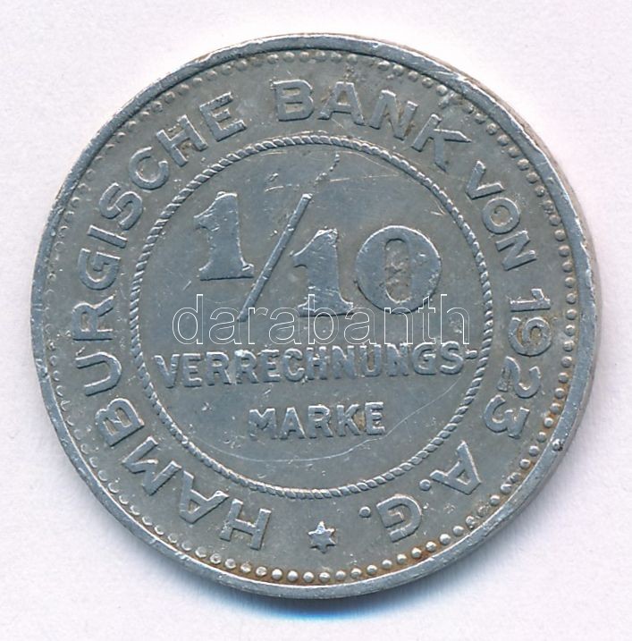 Németország / Weimari Köztársaság / Hamburg 1923. 1/10M Al szükségpénz... https://www.darabanth.com/en/414-Online-auction/414.0/Numismatics/Emergency-Coins-and-Notes~2000005/Nemetorszag-Weimari-Koztarsasag-Hamburg-1923-110M-Al-szuksegpenz-T3-Germany-Weimar-~II2596859
