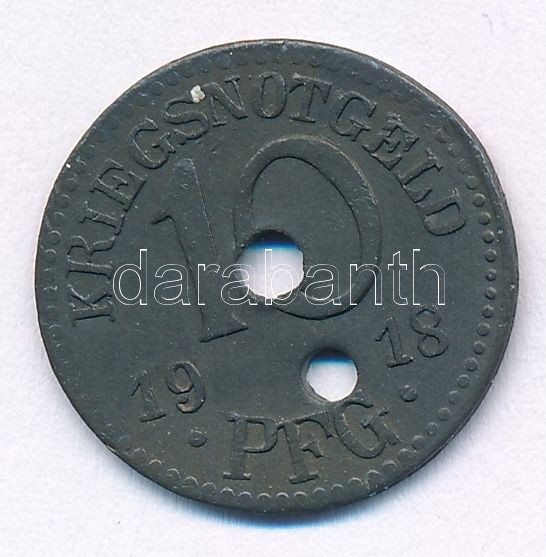 Németország / Weimari Köztársaság / Rudolstadt 1918. 10pf Zn szükségpénz lyukasztással érvénytelenítve T:2