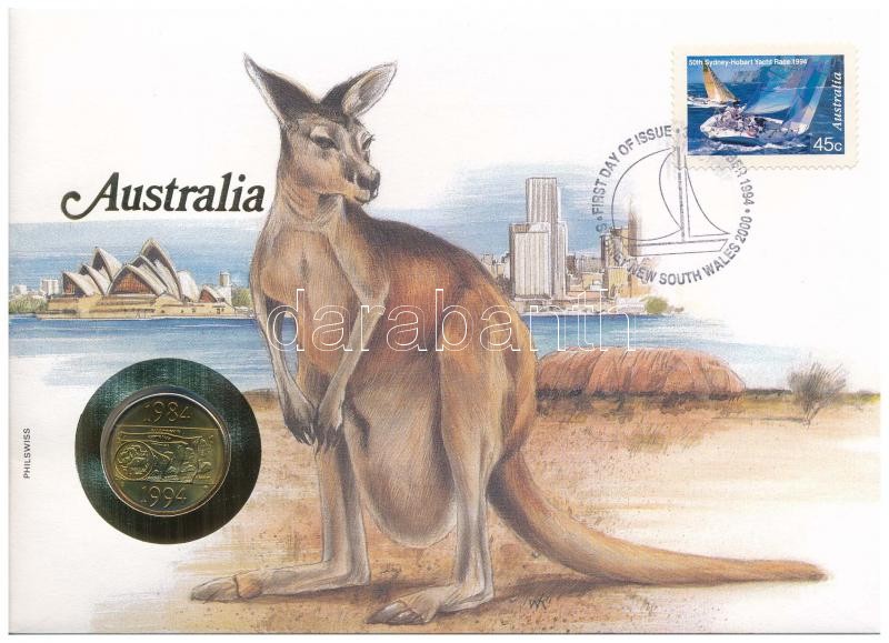Ausztrália 1994. 1$ Al-Br "A Dollár 10. évfordulós kiadása" ... https://www.darabanth.com/en/414-Online-auction/414.0/Numismatics/Envelopes-with-Coins-and-Banknotes~2000006/Ausztralia-1994-1USD-Al-Br-A-Dollar-10-evfordulos-kiadasa-erme-felbelyegzett-boritekban-~II2590947