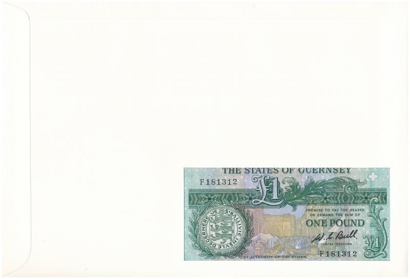Guernsey 1980-1987. 1 Pound in envelope with stamp and cancellation C:UNC