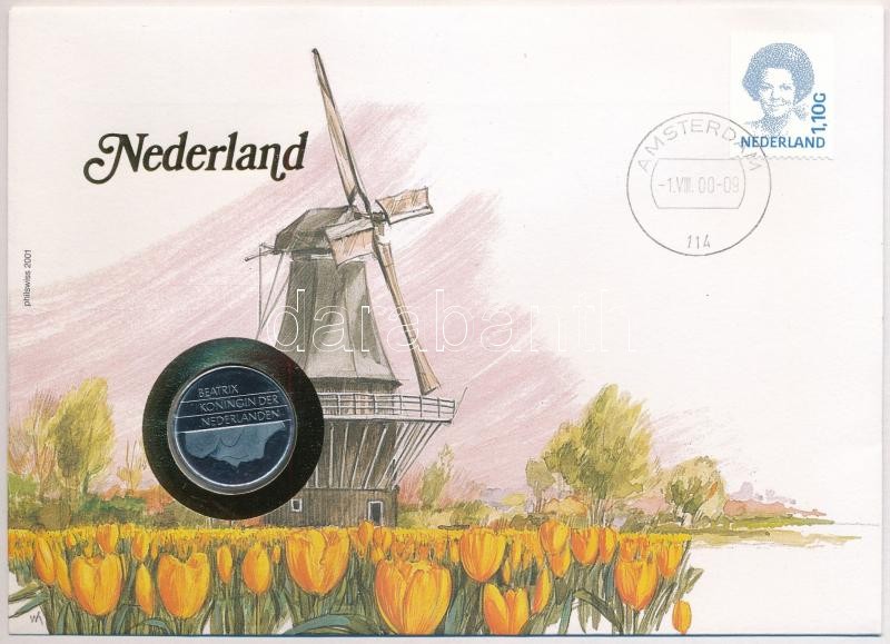 Description: Hollandia 2000. 1G Ni érme felbélyegzett borítékban, bélyegzéssel, német nyelvű tájékoztatóval T:1- kis karc