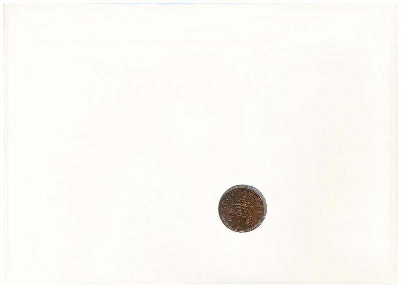Great Britain / British Indian Ocean Territory 1990. 1 Penny Br in envelope with stamp, cancellation and a prospectus in german C:UNC small scratch, patina, one smaller tear on the envelope