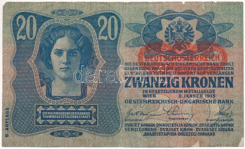 1913. 20K II. kiadás piros "Deutschösterreich" felülbélyegzé...