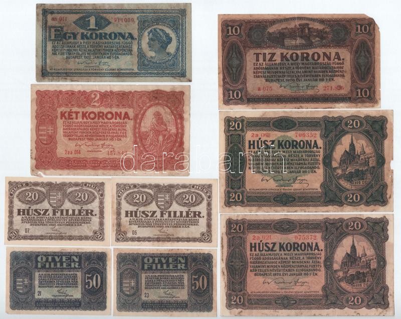 1920. 20f-20K (9db/6xklf) T:I--III közte: hajtatlan, szakadások, folt,...