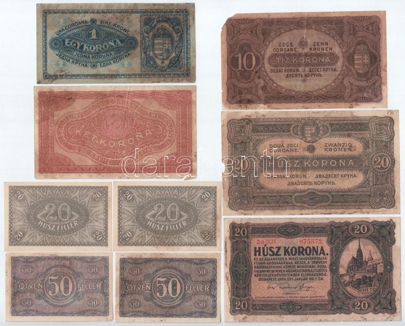 1920. 20f-20K (9db/6xklf) T:I--III közte: hajtatlan, szakadások, folt, anyaghiány