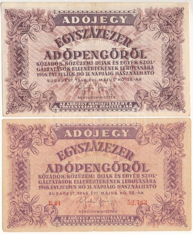 1946. 100.000P (vízjeles papíron, sorszámmal) + 100.000AP (sorszám és ...