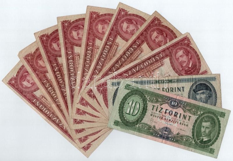 https://www.darabanth.com/en/414-Online-auction/414.0/Numismatics/Hungarian-Banknotes~2000007/1969-10Ft-plus-1975-20Ft-plus-1992-1995-100Ft-8x-TIII-III-~II2587500