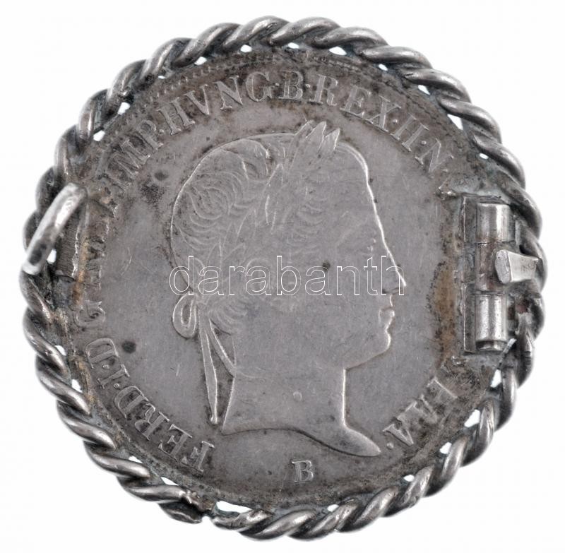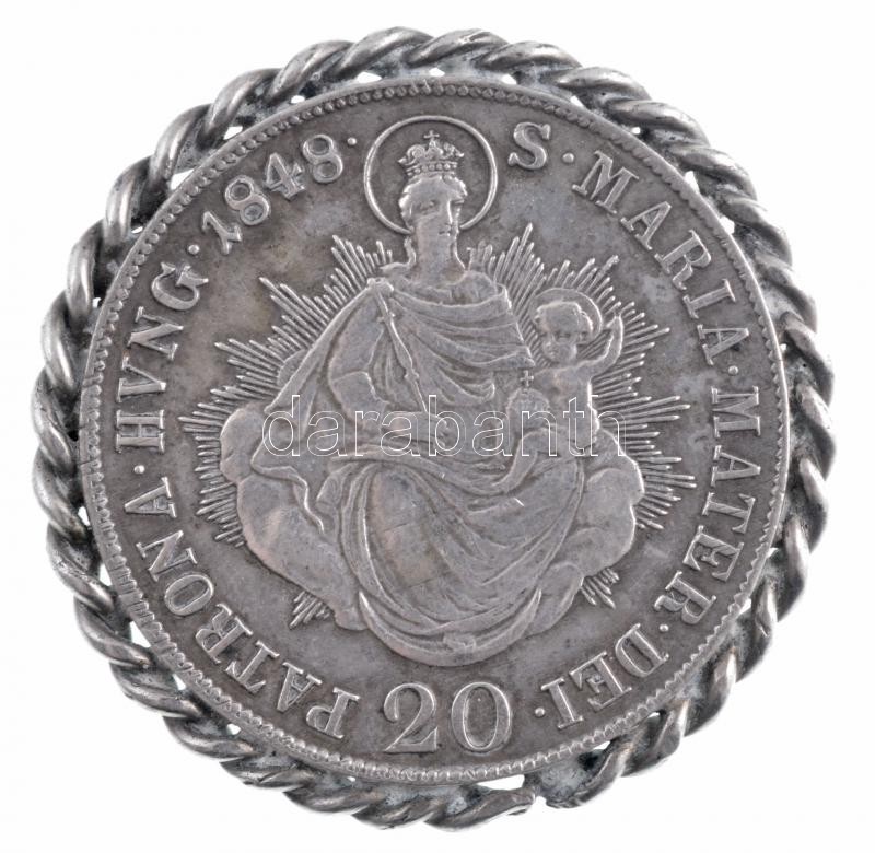 https://www.darabanth.com/en/414-Online-auction/414.0/Numismatics/Hungarian-coins-and-coins-with-Hungarian-mint-marks~2000008/1848B-20kr-Ag-V-Ferdinand-jelzetlen-Ag-keretben-kituzove-alakitva-tu-letort-br-8-88g~II2589631