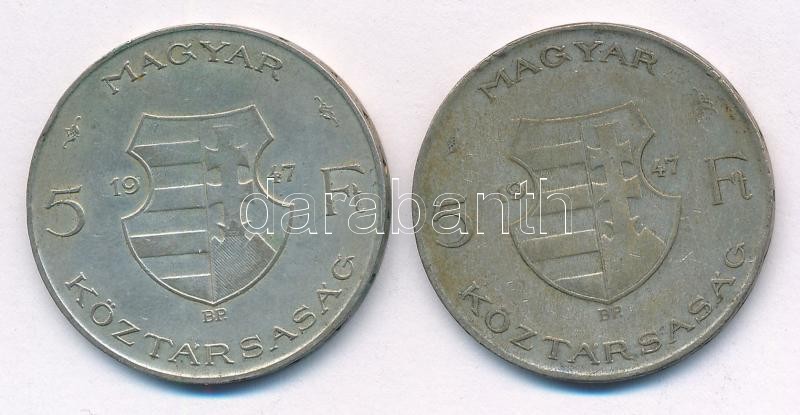 1947. 5Ft Ag "Kossuth" (2x) T:2-,3 patina
