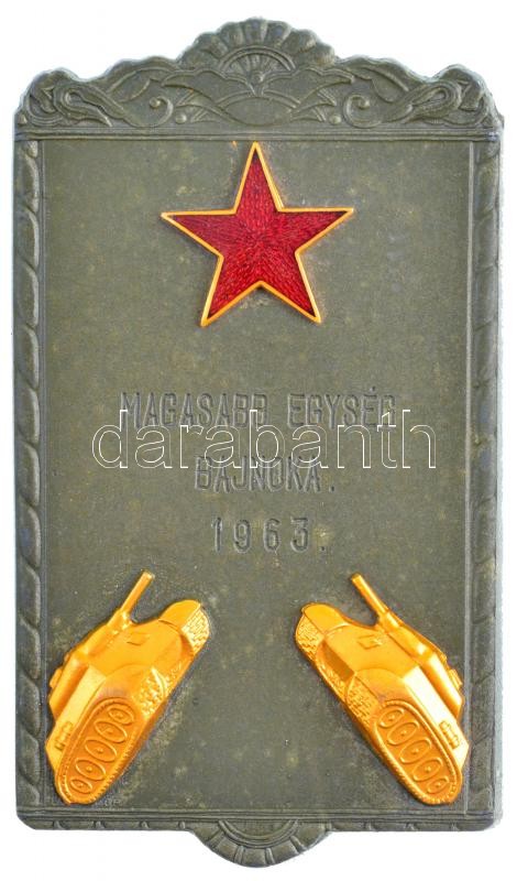 1963. "Magasabb egység bajnoka 1963" részben aranyozott, zománcozott fém díjplakett (88x51mm) T:1-