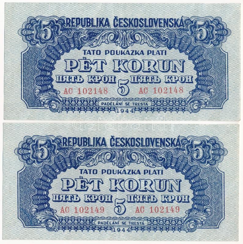 Csehszlovákia 1944. 5K (2x, sorszámkövető) T:II