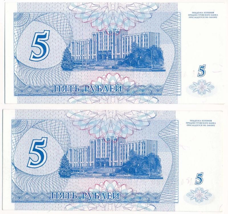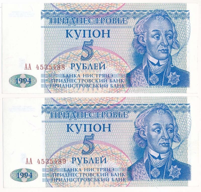 Transnistria 1994. 5 Rublei (2x, consecutive serials) C:UNC