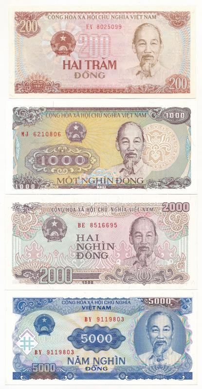 Vietnam 1987-1991. 200 Dong - 1000 Dong (4xdiff) C:UNC,AU