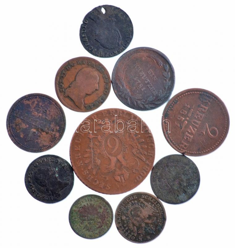 Ausztria 1781A 1/4kr Cu "II. József" + 1781F 1kr "II. József" + 1783F 1/2kr Cu "II. József" + 1812. 1/2kr Cu "I. Ferenc" + 1800A 6kr Cu "I. Ferenc" + 1851. 1/2kr Cu + 1851A 1kr Cu + 1851. 2kr Cu + 1859A 5/10kr Cu + 1859A 1kr Cu T:2-,3