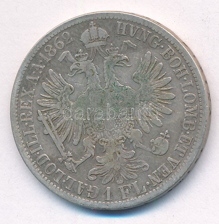 https://www.darabanth.com/en/414-Online-auction/414.0/Numismatics/Worldwide-silver-and-metal-coins~2000013/Ausztria-1862A-1Fl-Ag-Ferenc-Jozsef-T2-patina--Austria-1862A-1-Florin-Ag-Franz-Joseph-CVF-p~II2593521