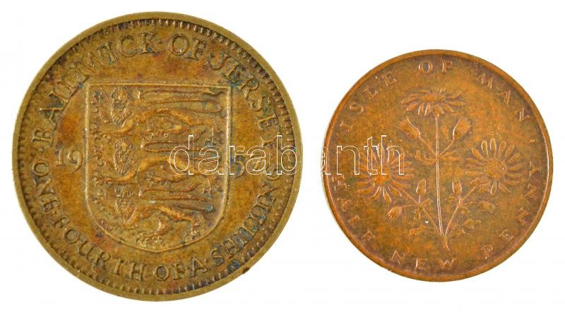 Jersey 1957. 1/4Sh "II. Erzsébet" + Man-sziget 1971. 1/2p Br T:2-,1-