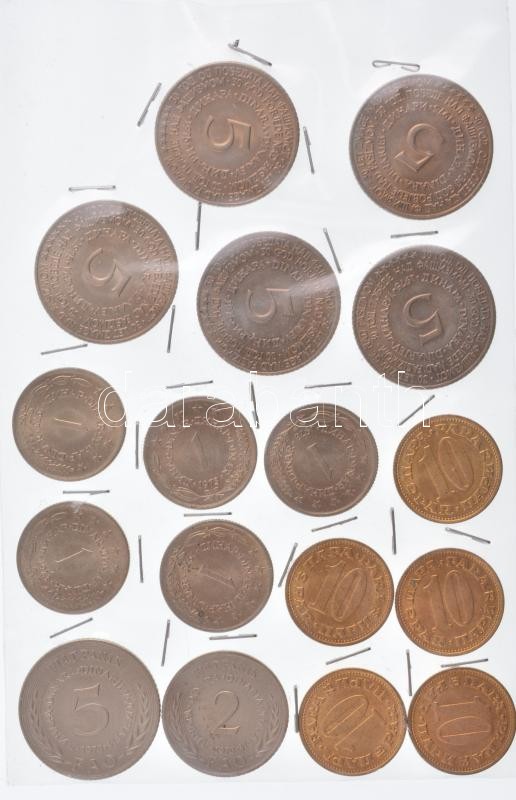 Yugoslavia 1970. 2 Dinara + 5 Dinara "FAO" + 1973. 10 Para (5x) + 1973. 1 Dinara (5x) + 1975. 5 Dinara (5x) C:UNC,AU