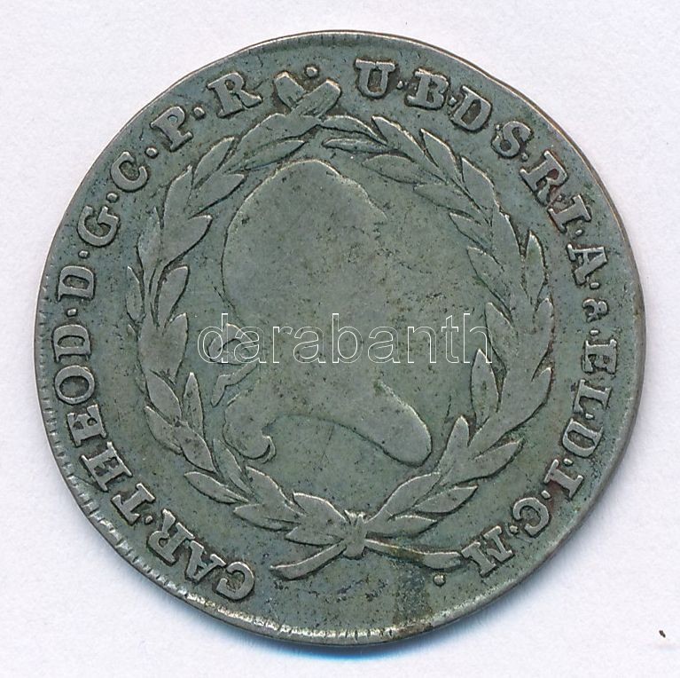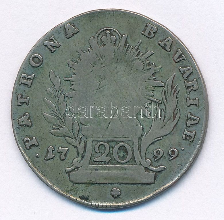 Német Államok / Bajor Választófejedelemség 1799. 20kr Ag "Károly ... https://www.darabanth.com/en/414-Online-auction/414.0/Numismatics/Worldwide-silver-and-metal-coins~2000013/Nemet-Allamok-Bajor-Valasztofejedelemseg-1799-20kr-Ag-Karoly-Tivadar-T3-patina-German-S~II2595490